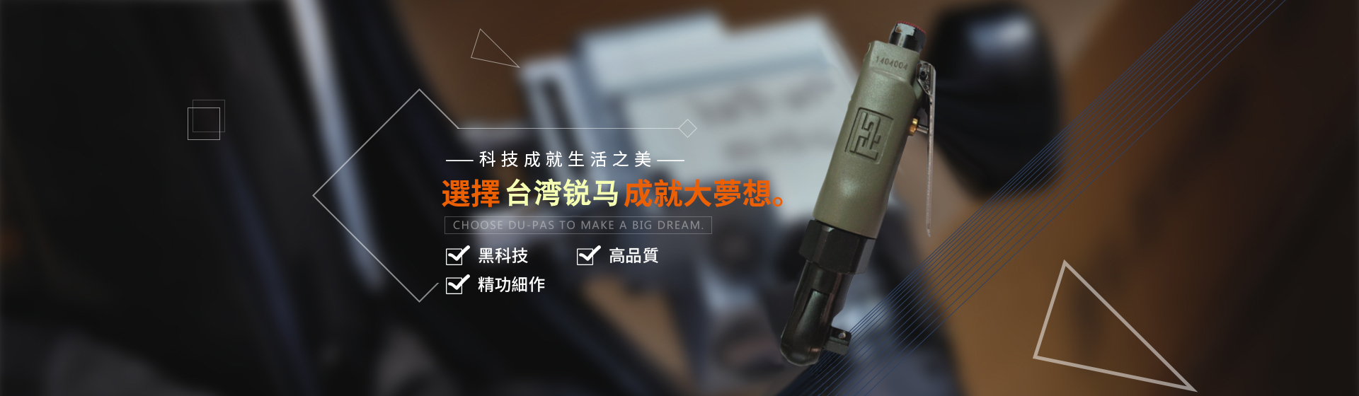 為給廣大客戶提供更加優(yōu)質(zhì)完善的服務(wù),臺(tái)灣銳馬氣動(dòng)工具于2001年進(jìn)入中國大陸市場(chǎng),并以100%臺(tái)灣原裝進(jìn)口氣動(dòng)工具在大陸銷售銳馬、杜派氣動(dòng)工具以及充電式電動(dòng)工具。